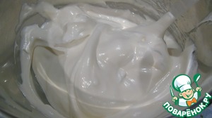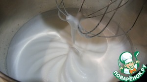 Продолжая взбивать, в два приема добавьте оставшийся сахар (120 г).