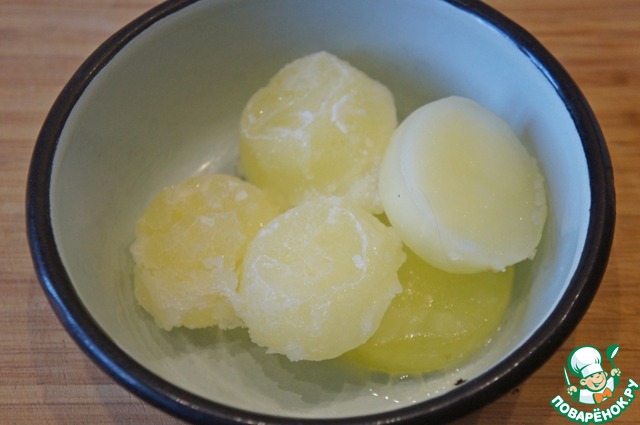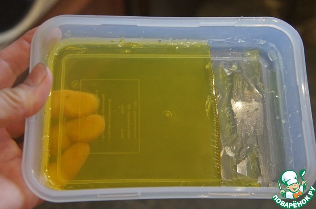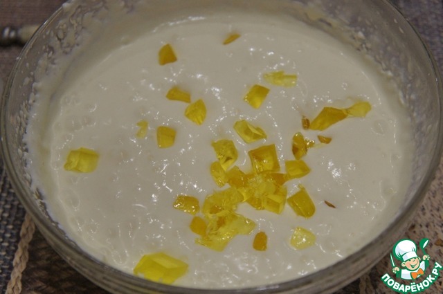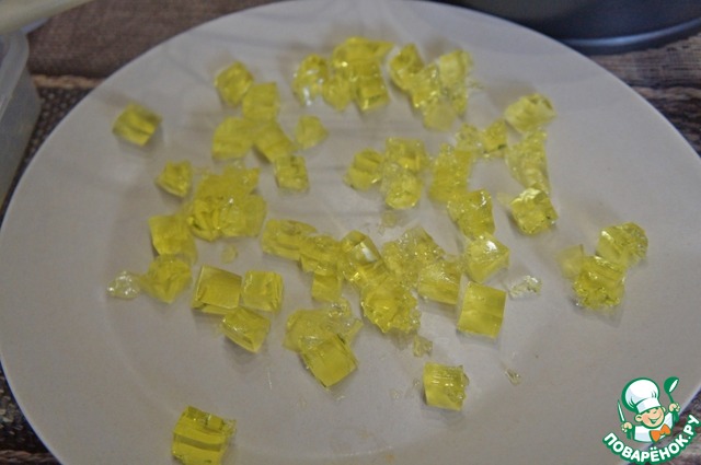 Один пакет желе растворить в стакане горячей воды (200 мл), дать застыть.