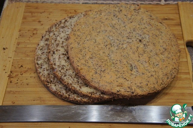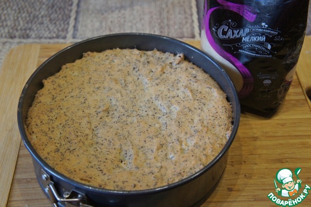 Выпекать около 30-35 минут при 175°С. Первые 20 минут под фольгой, затем фольгу снять, снизить температуру до 170*С и допечь до готовности. У меня корж был готов через 30 минут.