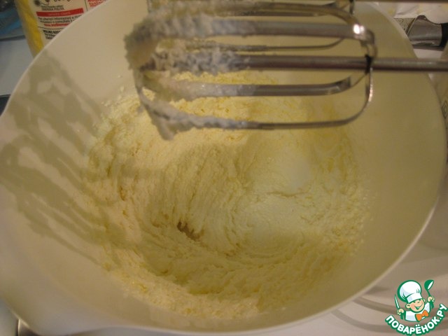 Взбить мягкое сливочное масло с сахаром и ванилином до бела.