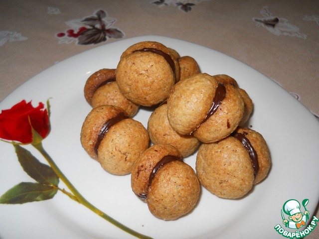 Теперь остается просто соединить между собой половинки печенья, выложив на одну половинку немного шоколада... Готовому печенью дать немного постоять (я использую решетку для тортов - как на фото!), чтобы оно "схватилось".