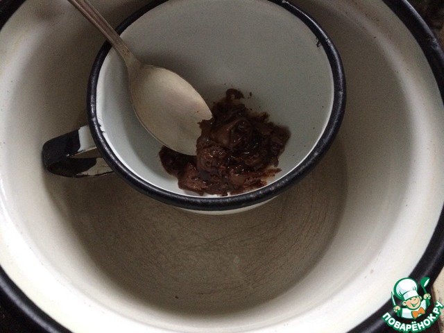 • Молоко вскипятить, добавить ванилин и замоченный заранее желатин, слегка остудить и ввести растёртый желток. Для аромата добавить ликер "Крем де какао".