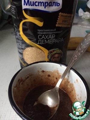 • Желтки растереть с шоколадом и тростниковым сахаром.