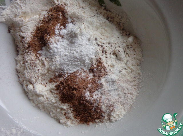 Пока смесь немного остужается, в другой миске соединить все сухие ингредиенты.