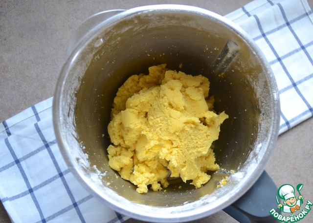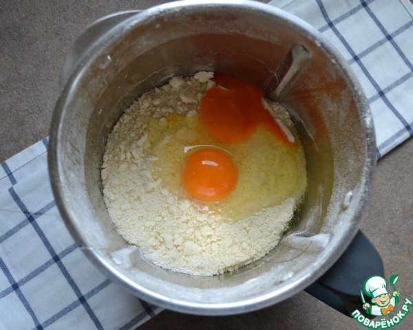 Добавить к мучной крошке одно яйцо и один желток и замесить тесто (вручную или в чаше блендера).