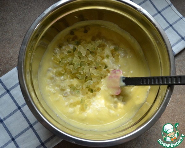 Добавить вареную в молоке пшеницу и цукаты. Традиционно используются цукаты цитрона... Перемешать.