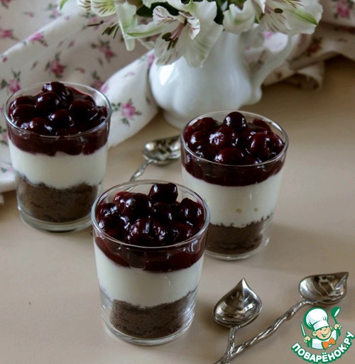 Сверху вишневый соус. Всё! До подачи убрать в холодильник.