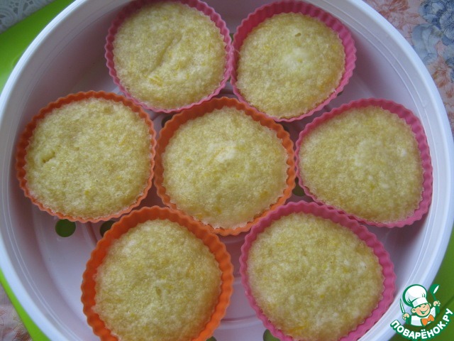 Выложить взбитую массу в формочки. Накрыть каждую фольгой, выпекать в мультиварке на пару 20 минут.