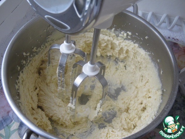 Сливочное масло взбить с сахаром, постепенно подливая яйца, которые предварительно слегка перемешать.