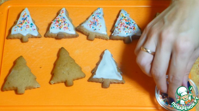Украсить получившиеся пряники сахарной глазурью (я брала покупную) и посыпкой на Ваш вкус!