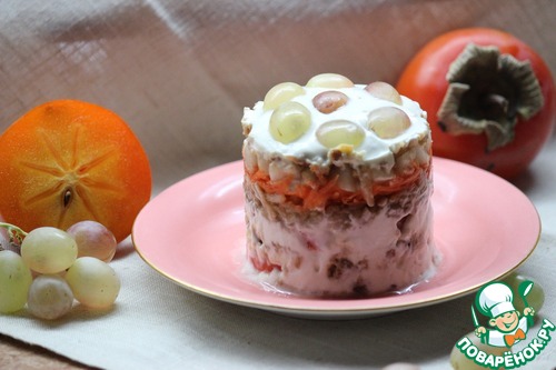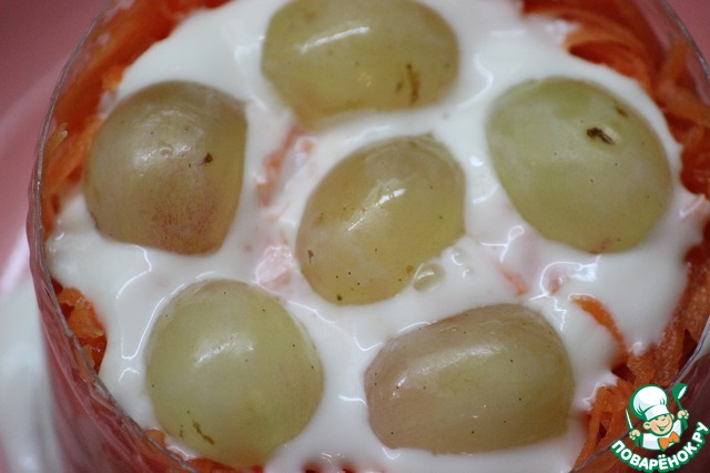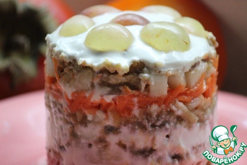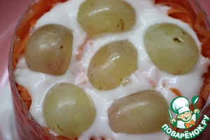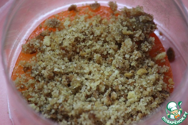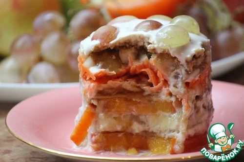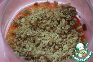 Таким образом чередуем слои из фруктов и моркови, переслаивая крошкой и сметаной.