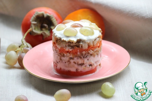 Разумеется, слои можно можно и нужно варьировать в зависимости от высоты стакана, от вкуса и настроения, но первым слоем должна идти хурма, чтобы конструкция держалась.