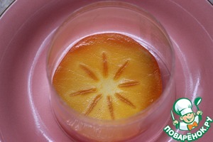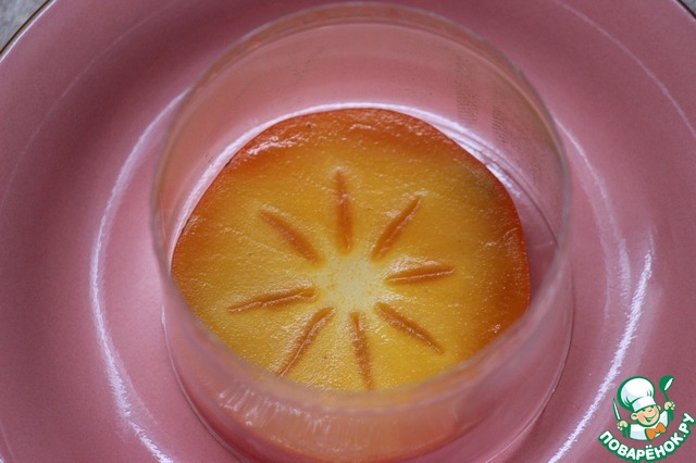 На блюдце водружаем кольцо и опускаем в него кружок хурмы. -