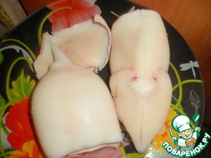 Видимо мне нужно было подробнее остановится на этом моменте. Я добавила в рецепт, как подготовить кальмар.Посмотрите 2-е фото. Спасибо за внимание к рецепту, спрашивайте, но думаю, все понятно.