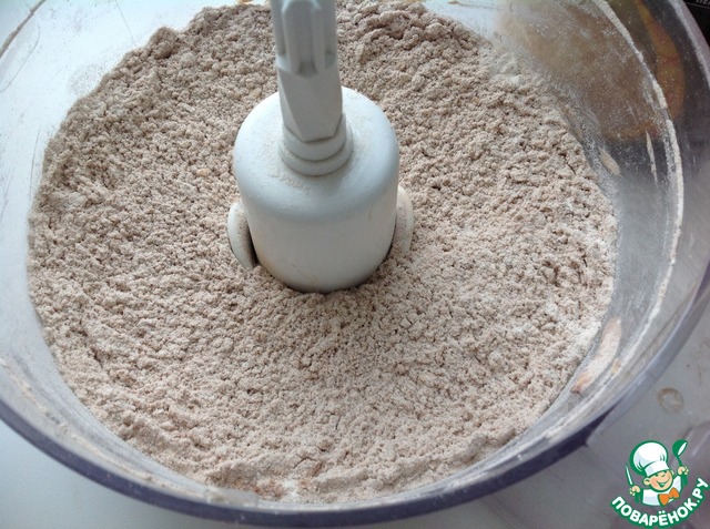 Поместить все сухие ингредиенты (муку, сахар, какао-порошок, корицу и соль) в кухонный комбайн и хорошо перемешать.