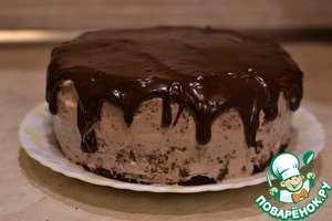 На первый корж выкладываем крем, прижимаем вторым. Я обычно ставлю кольцо от разъемной формы, в которой пеклись коржи., что бы тортик был ровным. Намазываем тонким слоем крема сверху, оставив примерно 2 ст. ложки для обмазывания боков. Убираем в холодильник на несколько часов, лучше на ночь, что бы коржи и крем "подружиись"