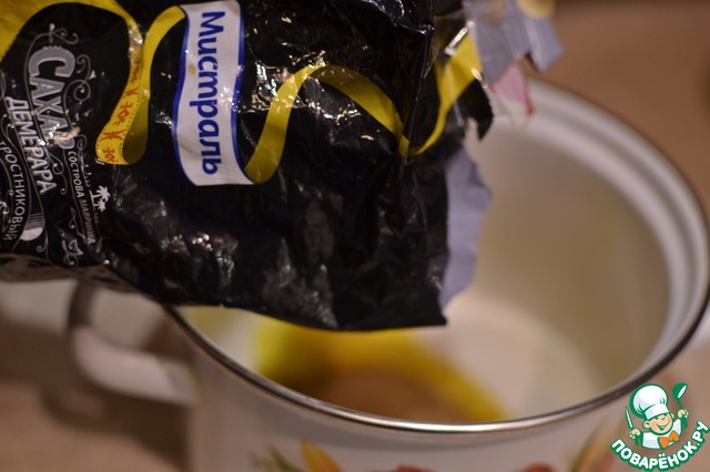 - Сахар коричневый (в желтки) — 40 г