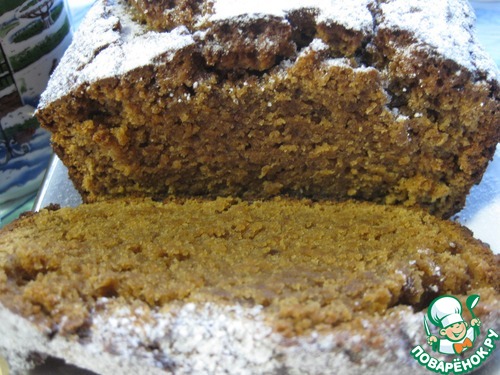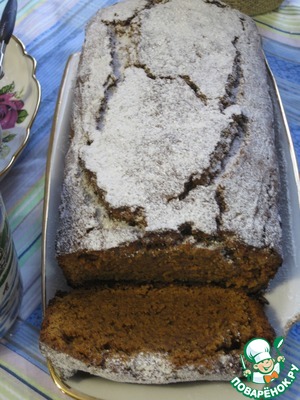 Кекс немного остудить, извлечь из формы и дать остыть полностью, готовый кекс посыпать пудрой или сделать глазурь.
