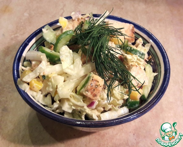 Три К - это три основных ингредиента в этом салате - курица, кукуруза и капуста! Салат хорош для повседневного меню, а может и украсить праздничный стол!