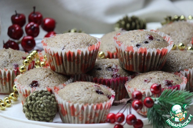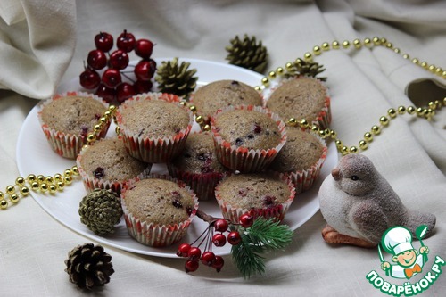 Рецепт «Пряные кексы с шоколадом и клюквой»: