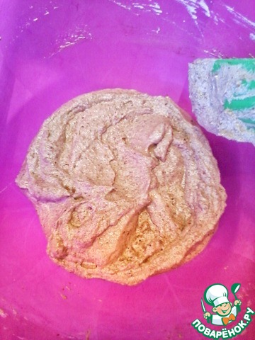 Все сухие ингредиенты смешайте. Добавляйте в белки по частям, перемешивая лопаткой сверху вниз. Масса уменьшится втрое. -