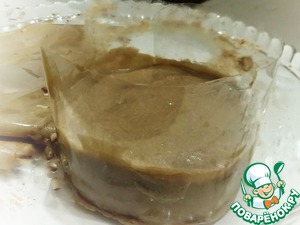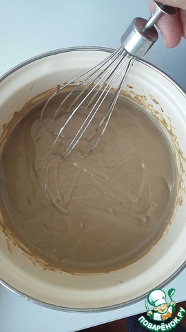 Смесь добавьте к кипящему молоку и доведите до кипения, постоянно помешивая. Поставьте охлаждаться, периодически помешивая, чтоб он не обветрился. Масло комнатной температуры взбейте с сахарной пудрой и коричневым сахаром. Порциями соедините его с охлажденным кремом взбивая миксером. В конце добавьте ликёр.
