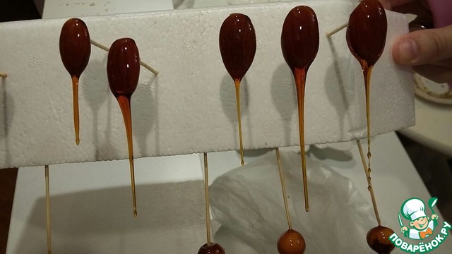 Я разрезала их тупой лопаткой без всякого труда. Одно пирожное к сожалению не выдержало 40 минут езды в тёплой машине и съехало на бок, а карамельные хвостики подтаяли, что видно на заднем плане, но на вкус это не повлияло, все ели с большим удовольствием.