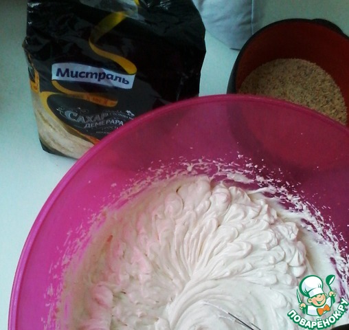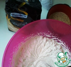 Взбивайте белки с сахаром постепенно. Должно получиться плотное безе.