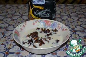 Финики очистить от косточек, порезать на небольшие кусочки. Залить горячим молоком и оставить на 7-10 минут.