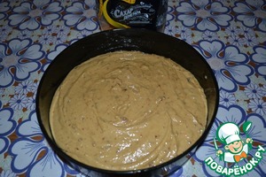 Выложить тесто в форму, застеленную промасленной бумагой для выпечки. У меня форма диаметром 26 см.