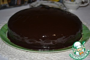 Готовый пирог полить шоколадной глазурью: растопить сливочное масло, сгущёнку, какао и ложку мёда. Варить до густых пузырьков.