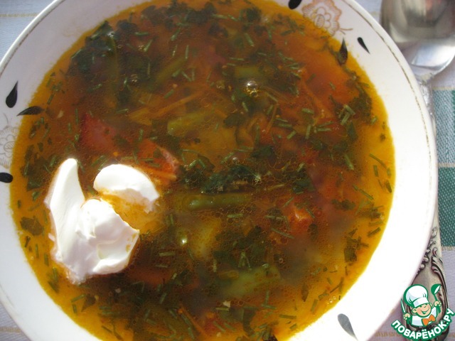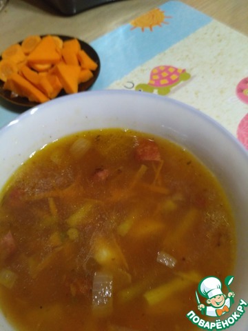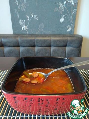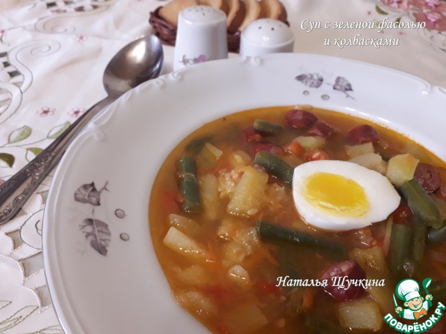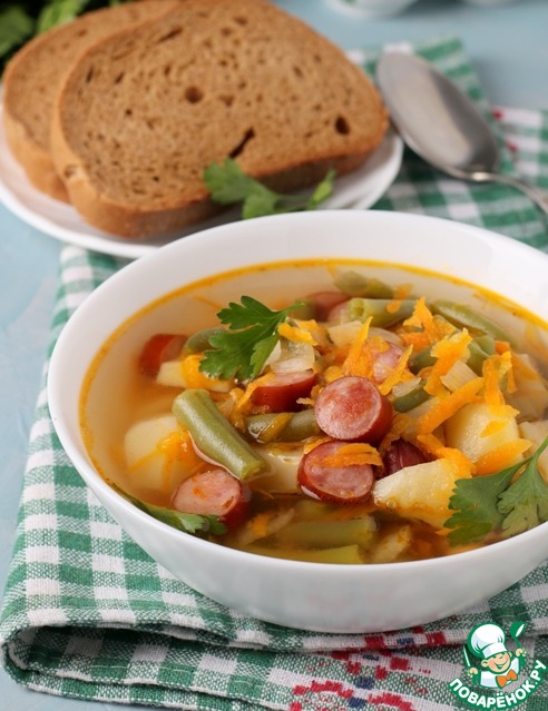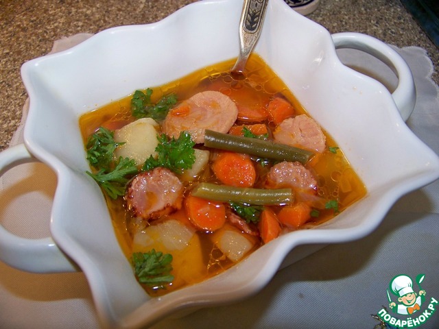Рецепт «Суп с зеленой фасолью и колбасками»: