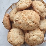 Из теста руками сформировать небольшие шарики и выложить на пергаментную бумагу. Затем лопаткой приплющить каждый шарик