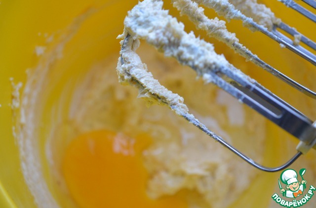 Муку смешать с разрыхлителем и просеять. Сливочное масло взбить с сахаром в течение 3-5 мин.