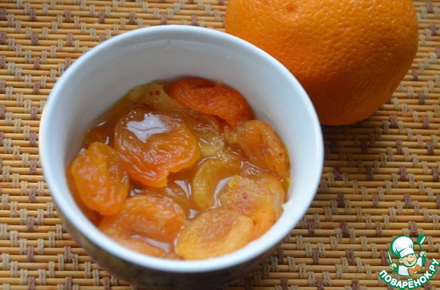 Курагу промыть и замочить в апельсиновом соке на 15 минут