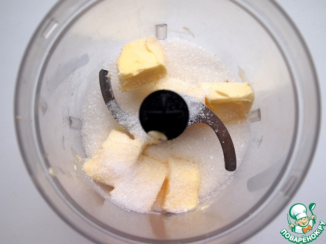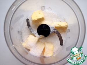 Сливочное масло и сахар поместить в блендер, взбить