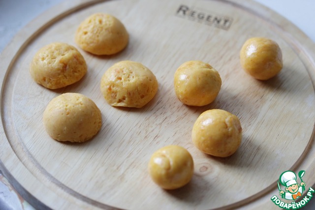 Я часть массы сразу разложила по силиконовым формочкам в виде полусфер. -