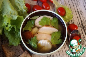 Подавать бульон вместе с нарезанными ломтиками запеченной курицы и картофельными ньоками. Приятного аппетита!