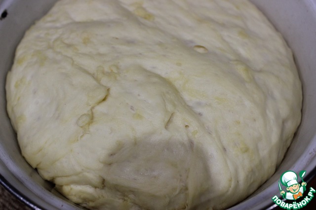 А тем временем наше тесто увеличилось в объеме в 2 раза.