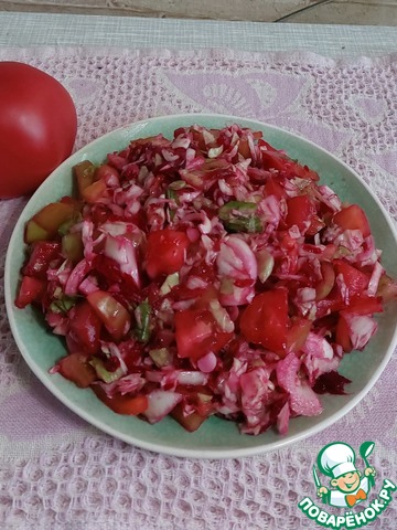 Если любите винегрет, то этот салат для вас. Своим вкусом он немного напоминает эту немудрёную закуску. Нежная сладкая свекла в сочетании со свежими овощами…. необычно и очень вкусно. Кстати, говорят, при кухне императора Александра I работал французский повар, который однажды, увидев, как местные повара готовят блюдо из овощей и поливают его уксусом, в шоке воскликнул: "Vinaigre?", что с французского переводится как «уксус». Ну, а наши повара, не поняв удивления французского кулинара, согласно закивали головами: «Да, мол, точно он, винегрет». Так и припечаталось к овощному салату с заправкой из уксуса название «винегрет». Хотя существует ещё одна версия появления диковинного названия этого популярного блюда. Как-то однажды подали Екатерине II новый салат, тот самый, из отварных овощей. Она, попробовав холодную еду, отодвинула тарелку от себя и с выражением крайнего возмущения на лице произнесла: «Фи! Не грето!» Таки-да, блюдо было холодным, а фраза «финегрето» трансформировалась в его название и стала «винегретом».