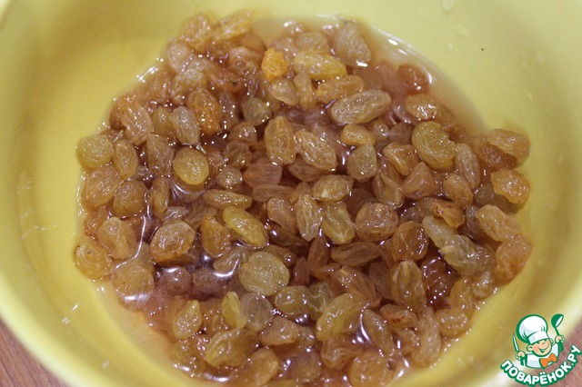 Чистый изюм залить коньяком и убрать минимум на 1 час. Я заливаю с вечера и готовлю на следующий день.