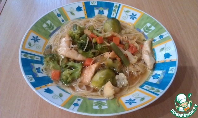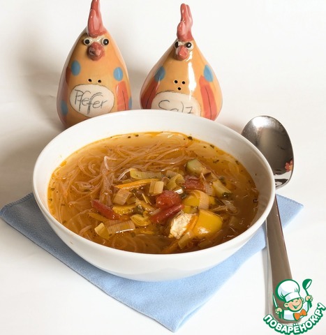 Рецепт «Овощной суп с курицей и фунчозой»: