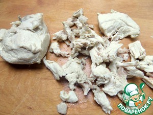 Для данного супа вынимаем куриные части и обрабатываем от костей и кожи.
