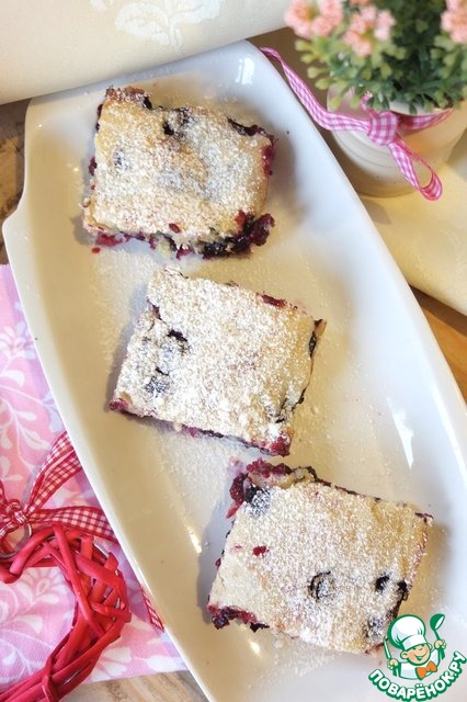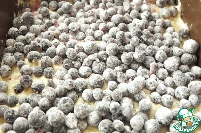Выкладываем половину теста в форму. Сверху выкладываем смородину.