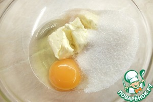 Сливочное масло комнатной температуры, яйцо, сахар и ванильный сахар взбиваем до однородности. -