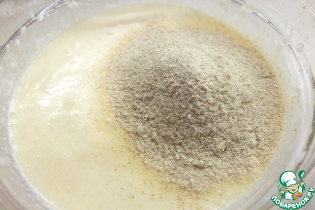 Добавляем просеянную муку и соду. Получается довольно густое тесто.