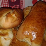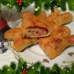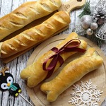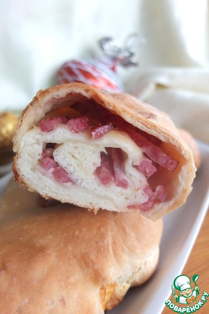 У меня нет большого опыта в выпечке, тем более дрожжевой, но из чисто теоретических знаний рискну предложить - я в одном рецепте пирожков-сигар видела такую хитрость: рулетик из теста не туго заворачивали в пергамент и готовый выпеченный пирожок получался замечательно ровным цилиндриком, думаю, можно и здесь попробовать этот метод, только завернуть не по все длине, а до разрезов. А для более аккуратного вида концов косточки я бы, пожалуй, не стала рассыпать колбасную крошку по всей длине рулета, а так же только до начала предполагаемых разрезов, тогда в разрезах между слоями тестами растечется только расплавленный сыр и в готовом виде тесто будет выглядеть более гладким, ровным, более похожим на суставчик косточки. Как думаете?