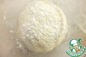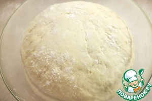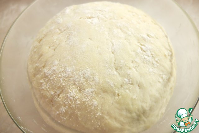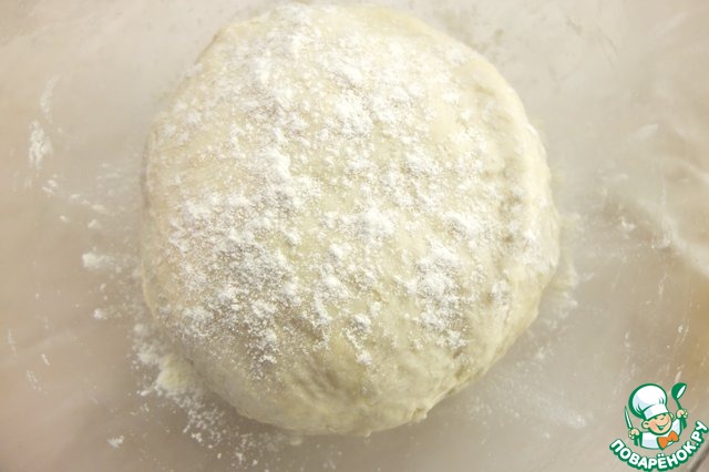 Перемешиваем до однородной консистенции, небольшими порциями добавляем оставшуюся просеянную муку. Поскольку мука разная, ее может понадобится меньше или больше, именно поэтому не стоит всыпать всю муку сразу. Тесто тщательно вымешиваем, скатываем в шар, слегка присыпаем мукой, накрываем полотенцем и ставим в теплое место для подъема на час.