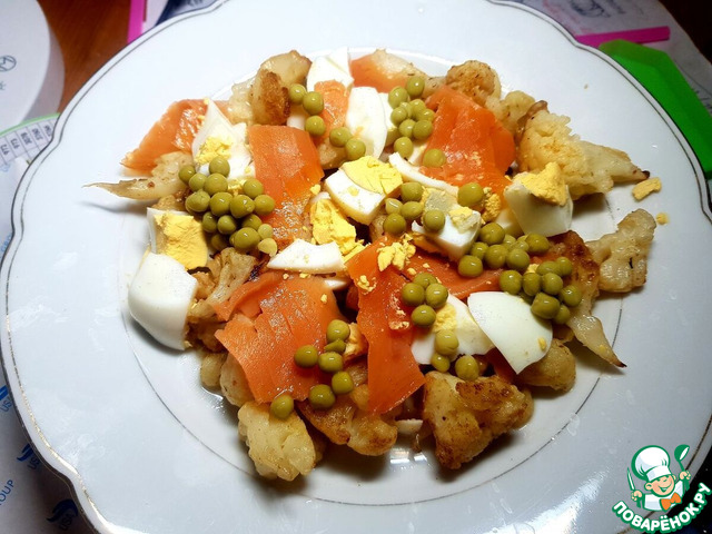 Очень нежный и вкусный салатик на основе цветной капусты и красной рыбы.