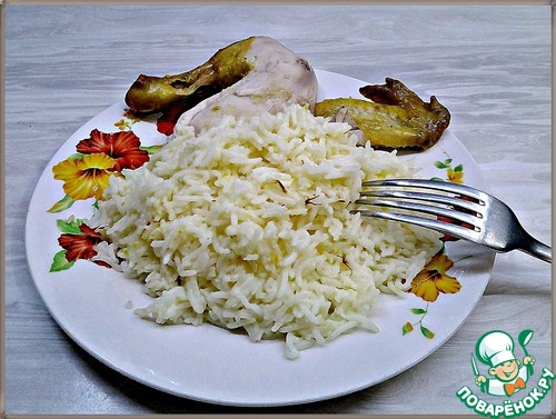 Перемешиваем вилкой для рассыпчатости, можно добавить сливочное масло.При варке рис увеличивается в размере, и после приготовления напоминает мелкую вермишель
